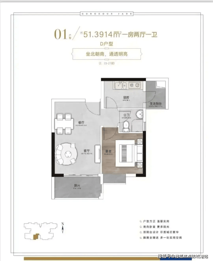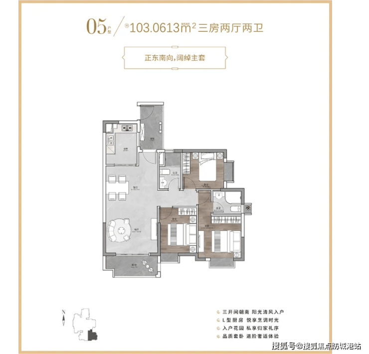 户型亮点:LDKB一体化+双主卧套房+全景落地窗