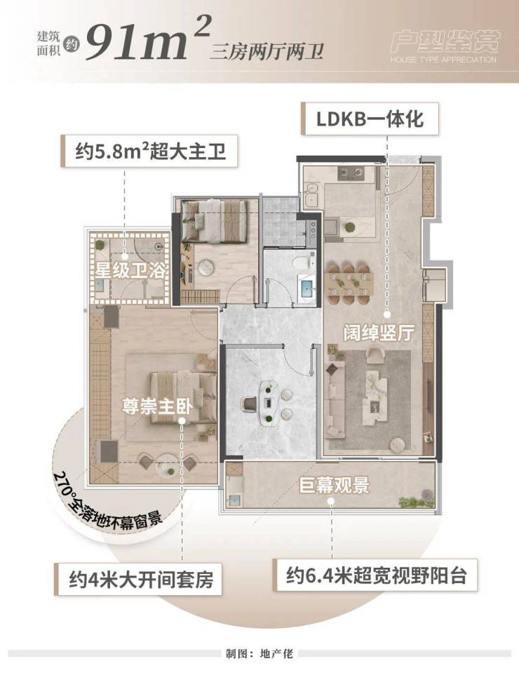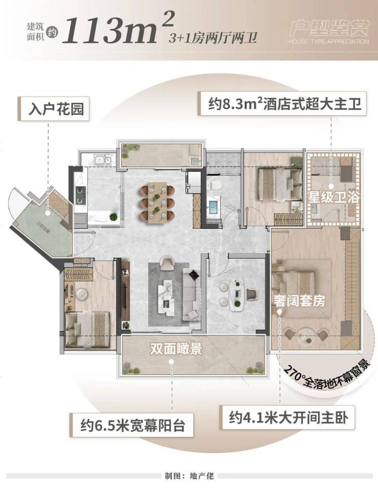 配备了约6.5米的宽幕阳台,无界观景,换新生活场景。