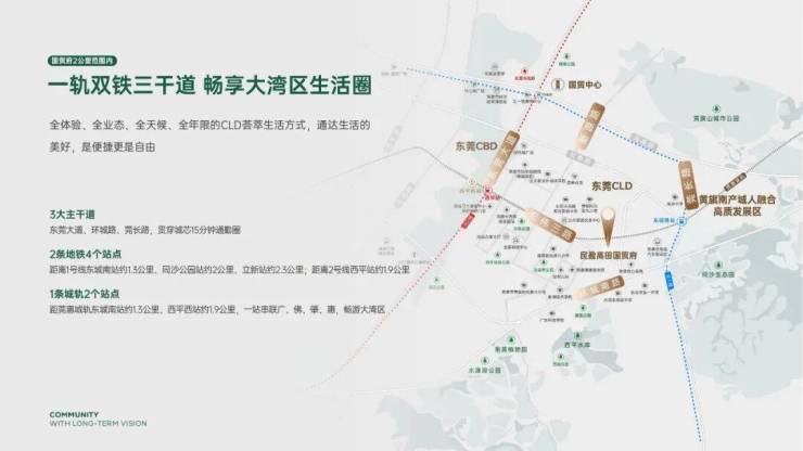 值得一提的是,东城南站除了是在建的地铁站外,在附近还有同名的城轨站点,也是叫东城南站,而东城南站的下一个站点就是西平西站,半小时畅通互联主城,1小时直驳湾区,轻松抵达广州、佛山、惠州等地,同频大湾区国际生活圈。