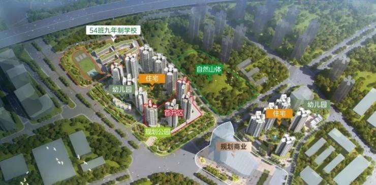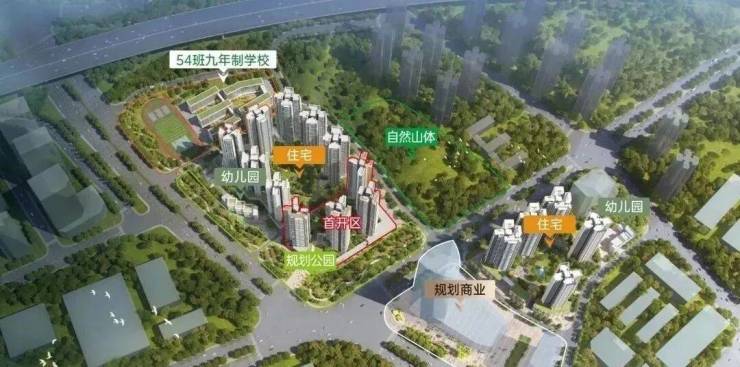 3,配置2所幼儿园和1所54班九年一贯制学校。这相当于从幼儿园、小学,到初中这12年学龄,小孩在家门口就能上下学。