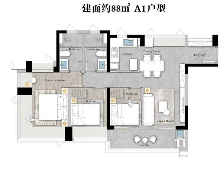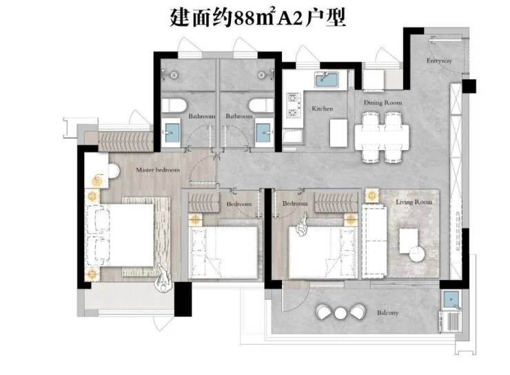 约88㎡三房两卫