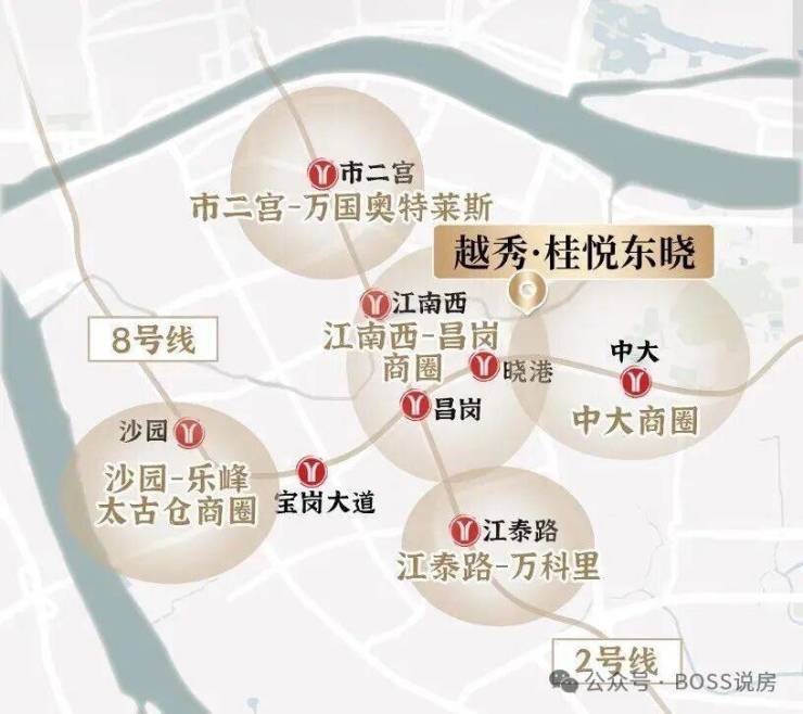 商圈:周边有江南西商圈、市二宫商圈、太古仓商圈、中大商圈和东晓南商圈等,这些商圈内商场林立,品牌店铺众多,能满足购物、餐饮、娱乐等多方面的需求。
