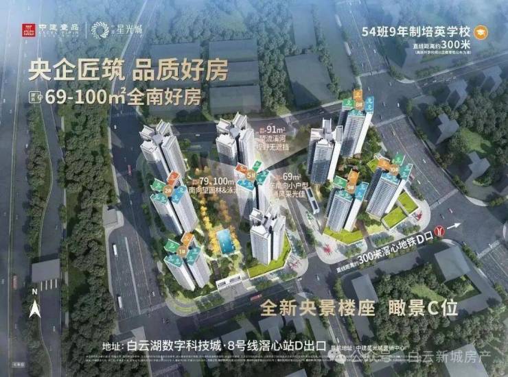 中建·星光城不仅位于白云湖数字科技城的核心位置,还与片区内的多个创新科技项目共同发展。作为央企中建的住宅代表作,我们坚守品质至上,从设计、施工到后续的维护管理,都严格执行高标准,力求每一个细节都体现出我们对居住品质的承诺。中建·星光城为年轻人、科技精英和家庭提供了一个兼具便利和舒适的理想居所。