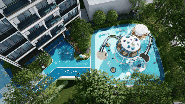 基于园林的大体量,项目打造星空泳池、亲子乐园、长辈休闲区、环跑步道、邻里会客厅等,让每位家庭成员都能找到自己的兴趣空间。