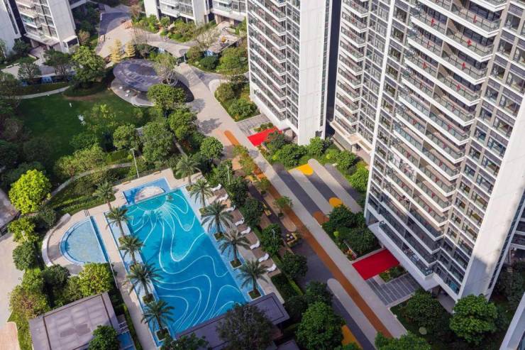 项目内部规划有 3.6 万㎡的中央园林,为居民提供了一片绿意盎然的休闲空间,居民可在此散步、休憩,享受自然的宁静与美好