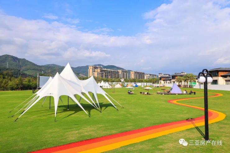 20000㎡草坪营地已于,融入ENCOFFEE咖啡吧、BBQ、野奢帐篷、飞盘体验、520m彩虹慢步道等丰富设施,打造三亚全新城市微度假目的地。
