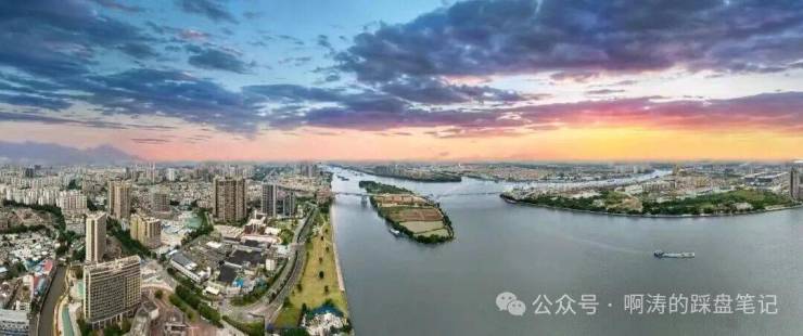 5年322宗地,9块江景,占比2.8%,但南向一线无遮挡江景,只此映澜台。项目位于珠江南航道核心地段,距江面约78米,近800米阔绰江面,四江交汇、双岛点缀,拥有绵延10公里的江岸线景观,汇聚城市塔尖配套与圈层。
