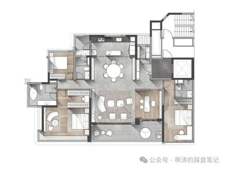 半定制硬装:针对203m2、246m2定制房间数量、功能落位及功能布局,满足不同家庭结构不同生命周期需求