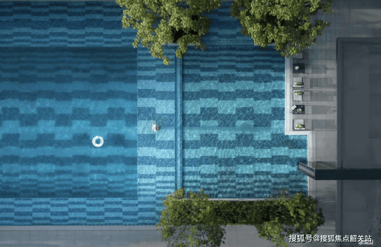 花园泳池:成人、儿童分池玩乐,安心释放玩水天性(成人泳池面积约400㎡,泳道长约30m,儿童泳池面积约120㎡)