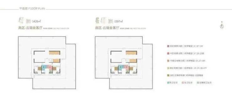 企业会客厅:38-44F:338-479㎡45-47F:1,427-1,596㎡(整层)