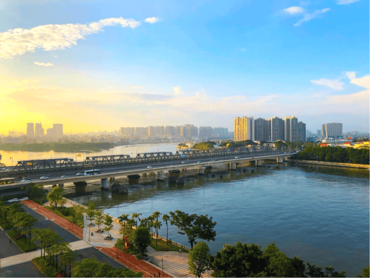 新世界凯粤湾位于白鹅潭门户综合区,广佛发射线以东、芳村大道以北,北邻珠江。项目距离珠江主航道仅约50米,从小区走到珠江也就一分钟的事。中心城区内距离珠江50米左右的住宅地块,几乎已成绝版,这大概也是新世界凯粤湾稳居中心城区销冠、稳居白鹅潭人居地标的首要原因。如此核心的滨江地段,拥有的城市资源自然也是顶配