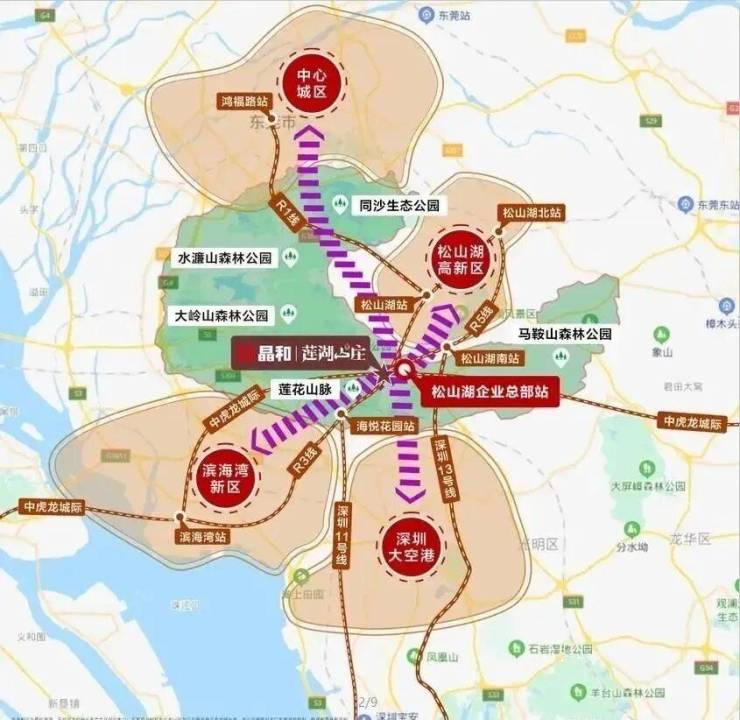 项目堪称天选之子,离尘而不离城,位于滨海湾新区和松山湖高新区的黄金中轴。4地铁+1城轨+5高速的高配置,贯通深圳和东莞南北向的交通路网,全面连接整个大湾区。