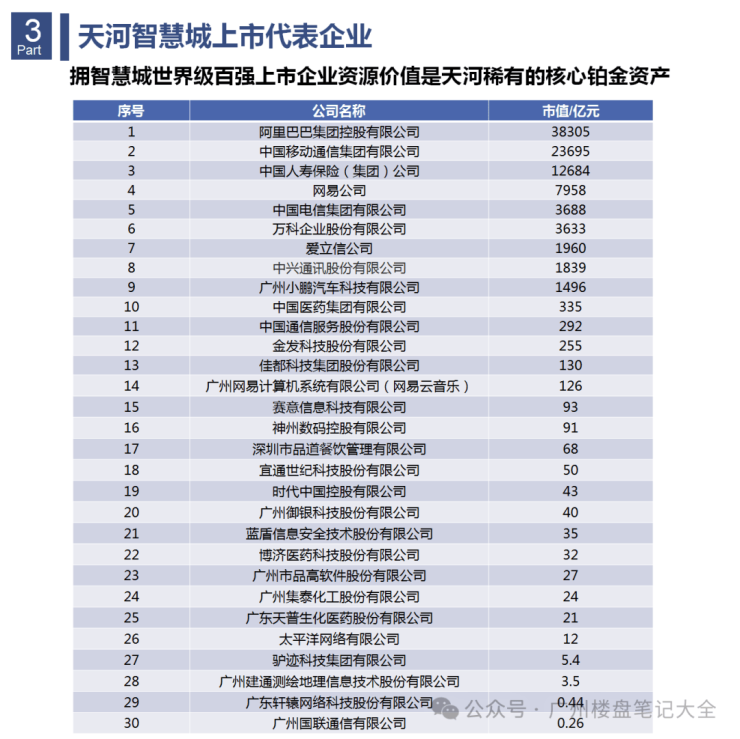 【产业配套】大钱景----世界级百强上市企业环绕,数千家高新企业进驻,数十万高薪精英为邻天河智慧城已经吸引了超过数千家企业进驻。阿里巴巴、中国移动、中国人寿等世界级500强企业,以及万亿级百强上市企业为邻,网易、小鹏等多所千亿级上市企业环绕。