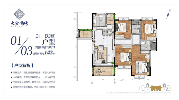大宏锦绣依据现代人居的标准,以精细到每一处细节的匠心,打造90-140㎡ 两至四房品质华宅