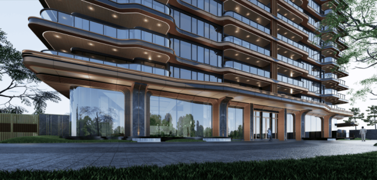 因此,整体建筑呈现多维视觉感官体验,兰园采用大量圆弧和柔美线条,让建筑与自然同频律动,宛如珠江边的一首高贵的乐曲。