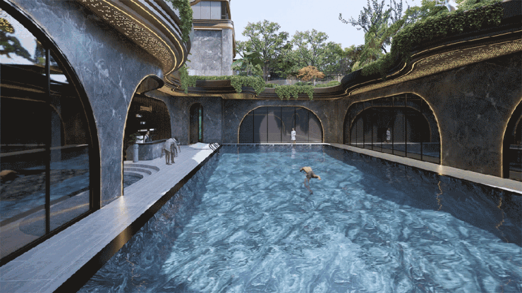负一层会所虽还未对外开放,但高标准的设计,值得期待,拥有约25米长,10米宽,1.5米深的会所泳池,将采用普拉达绿大理石通铺,流水荡漾下,熠熠生辉。四周配备了男女独立更衣室、淋浴间、洗手间、储物间等,就连服务吧台及露天阳光躺椅,也全部对标五星酒酒店。