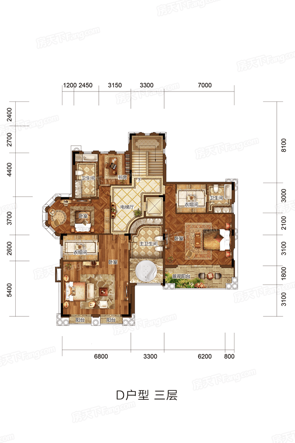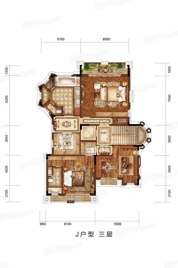 花园面积:631-897㎡赠送面积:759-1297㎡