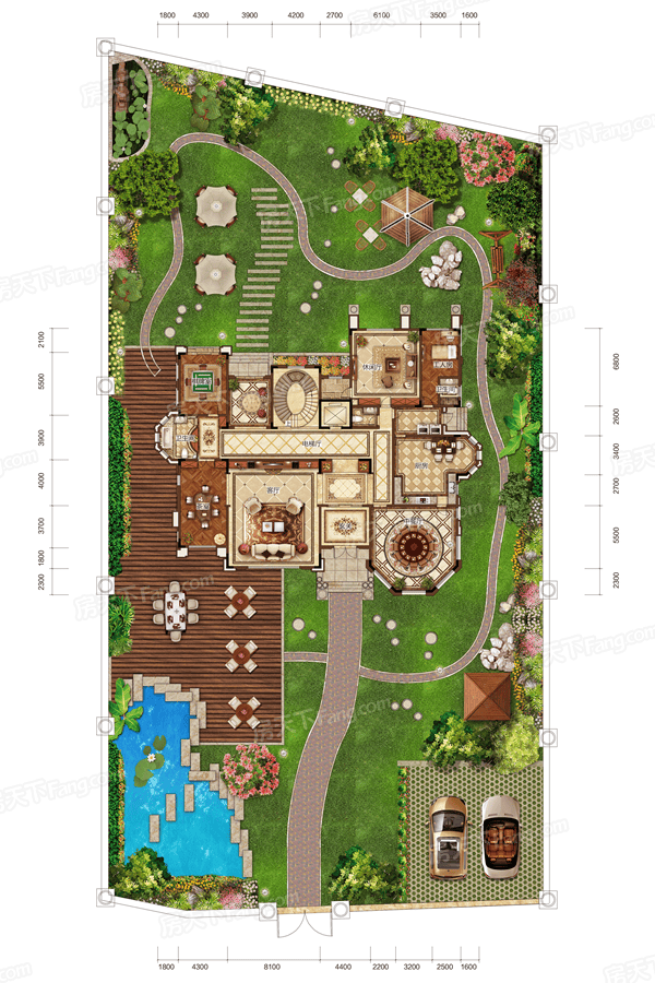 花园面积:793-1027㎡赠送面积:993-1227㎡