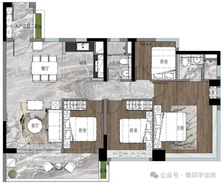 105平,算是长隆万博悦府125平,以及万博城188平的缩小版。