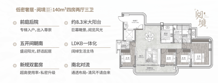 岭南艺术现代园林,营造前庭-中厅-后园三进归家礼序,以五大奢享隐居场景,打造公园里的家。