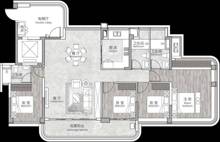 提取白鹭飞翔之美意,外立面以轻柔圆弧倒角线勾勒出白鹭归家之灵动,采用大面LOW-E玻璃、高端铝扣板、金属线条等,打造时尚、简约、奢华、现代的城市居住名片。