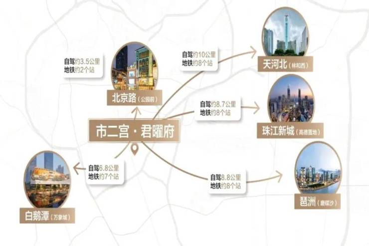 君曜府最大的底气来自于其不可复制的地段。项目位于海珠小港路,距离地铁2号线市二宫站仅约156米,对于在珠江新城、琶洲甚至越秀区工作的精英来说,这里的通勤效率极高:1站即达江南西,2站直通公园前,8站速达珠江新城。