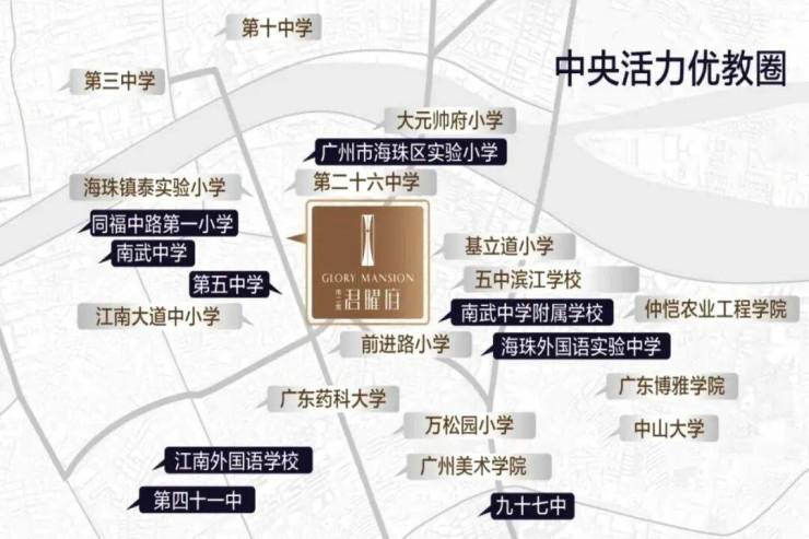 在教育资源日益不确定的当下,君曜府展现了极高的“确定性”。项目紧邻省一级名校——海珠区实验小学,构建了“出家门即入校门”的目送式教育闭环。初中阶段,周边更有五中、六中、南武中学等老牌名校环绕,升学路径清晰且优质。