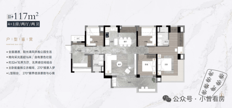 【117-120㎡四+一房二卫户型鉴赏】:百变五房,全配套改善之王