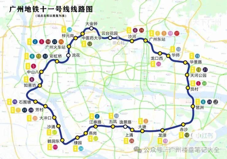 【交通配套】地铁上盖:地铁11号线上涌站上盖11号线是广州首条市区大环线,串联广州中心五区,与广州现有及未来的所有地铁实现换乘,被称为“换乘之王”(目前工程进度已达到97%,今年底就会通车)虹吸全广州的优质资源