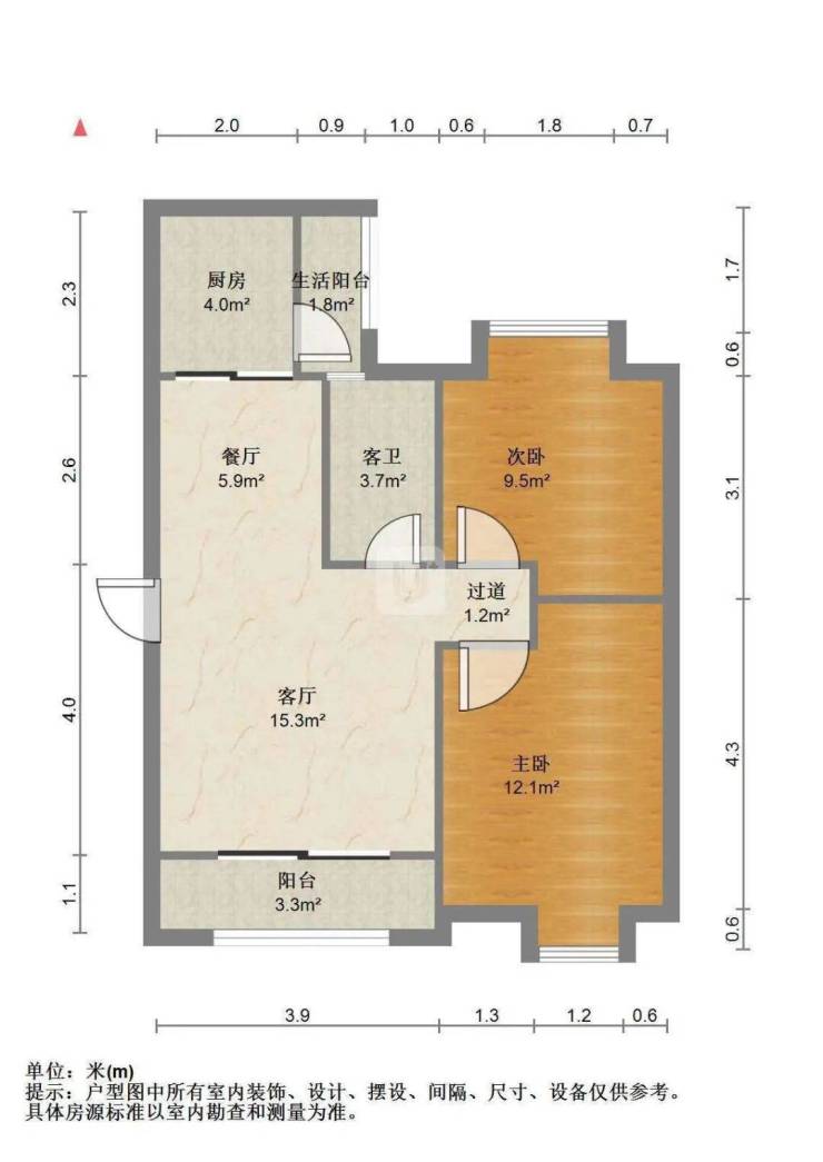 🔥 69.0631m²2房两双阳台户型,高层正南向望江,两间房南北对流,新式小区,完善的消防设施。