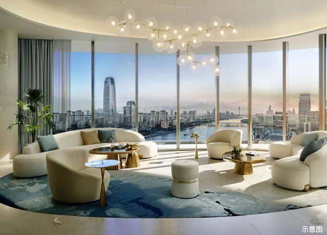室内设计由CCD郑中团队操刀,秉持“东意西境”理念,注重空间与情感的连接,通过270°江幕会客厅、全景落地窗等设计,将珠江美景最大化引入室内,实现“推窗即江景”的极致居住体验;普邦股份则负责园林景观设计,以“垂直城市”为核心理念,打造多层次生态空间,让建筑藏于绿意之中,在繁华都市中为业主营造静谧宜居的居住氛围。