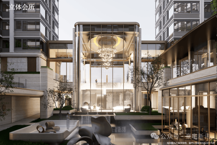 引领现代奢居美学范式,打造下沉式立体会所,覆盖娱乐、健身、儿童、交流等功能交叠的会所聚落,室内外景观功能相互渗透。
