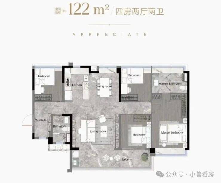 其中122㎡四室两厅两卫总价约 622.2 万元,空间布局紧凑实用;