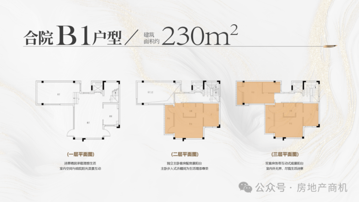 合院产品:以天然花岗岩延续自然地貌,打造特有的山地景观,立面采用多玻璃幕墙、真石漆、仿石材料、上乘铝板、瓦的有序结合,雕琢产品细节 演绎大气优雅格调