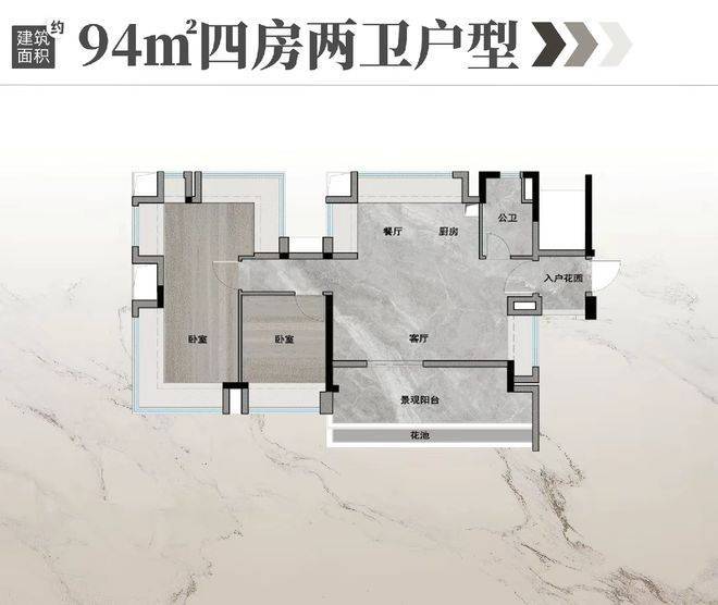 而94㎡四房则主打空间自由度,预留270°双边采光边厅,可打造全景舱式客厅;客厅开间达约4米,尺度媲美120㎡以上大户型。