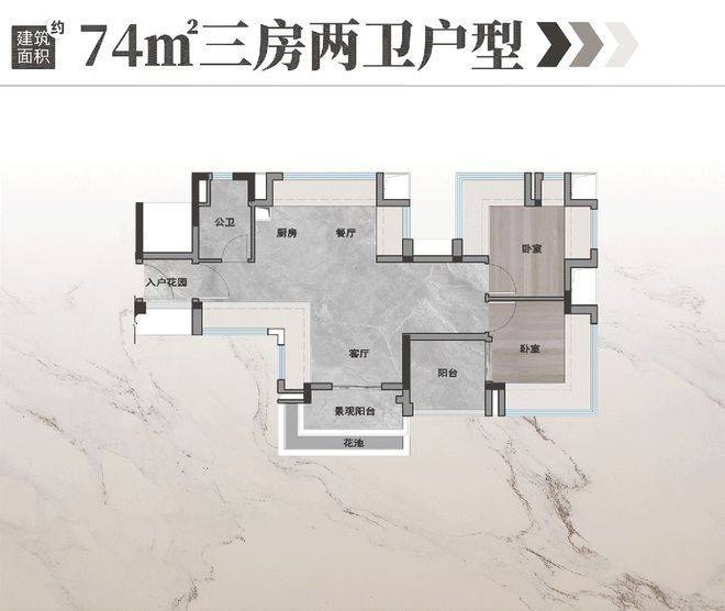 尤为亮眼的是其74㎡三房户型——这不仅是老黄埔当前新盘中的稀缺小户型,更是区域内唯一能在80㎡以下实现南北对流的产品。南向园景、北望山景,双重视野尽收眼底;餐厨空间预留灵活改造可能,操作台三面环绕长达约6.85米,轻松容纳六人聚餐,营造出远超面积段的“豪宅体感”。