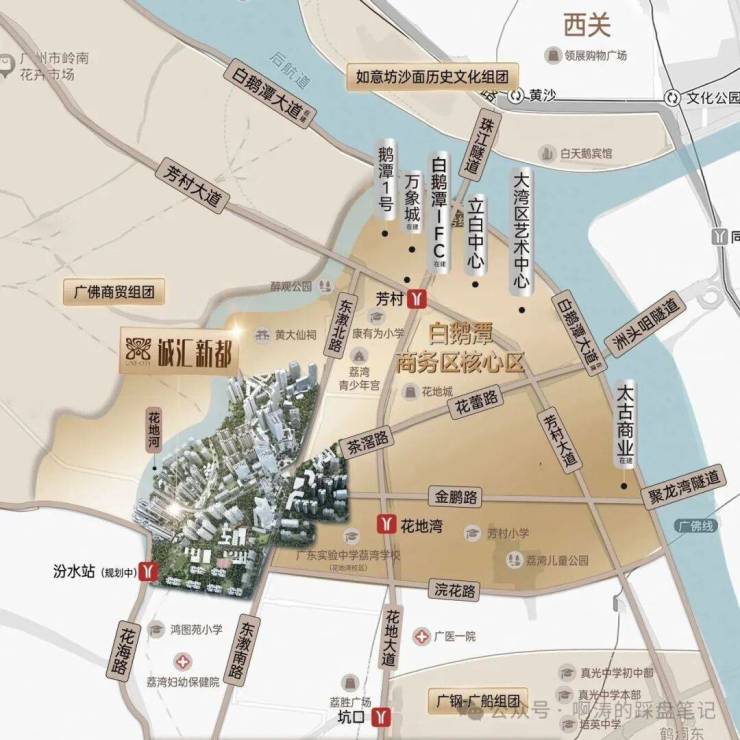 地铁:项目直距1公里范围内,1号线花地湾站、25号线汾水站(规划)双地铁环绕,畅达海珠、越秀;