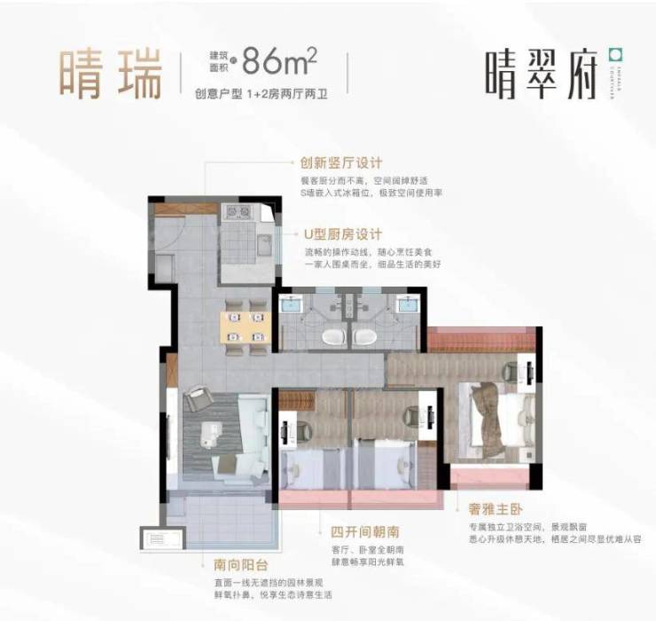 户型:建面约76-130 ㎡三至四房宽景臻品