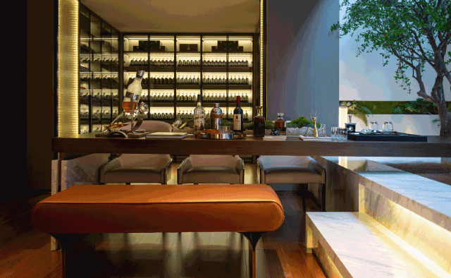 约7.3米挑高地下室,取意广州西关大屋"上观星云,下藏珍玩"的智慧:上层设茶室、书房,天光透过采光井洒落,下层藏酒窖、影音室。