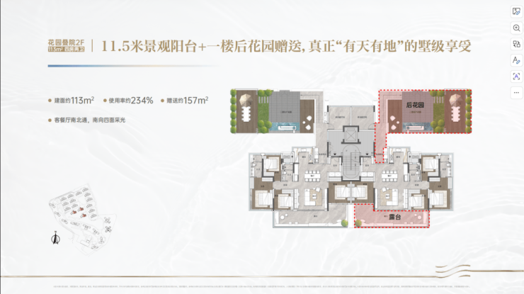 约113-124㎡低密花园洋房、约139-200㎡环幕江景板楼