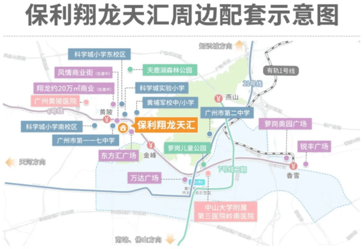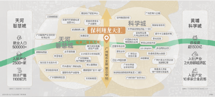 保利翔龙天汇位于黄埔科学城黄陂板块,算是天河智慧城和科学城的交汇处,能同时享受2个板块的利好。