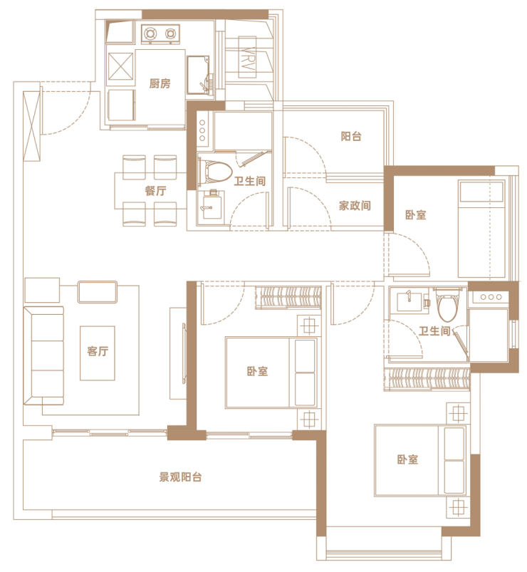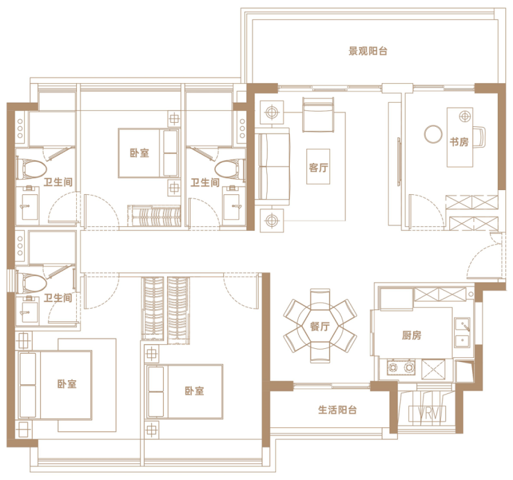 ✨【102㎡户型】南向纯四房,视野开阔,可南向俯瞰地块三中央园林景观,三开间朝南四房设计,舒居四房。