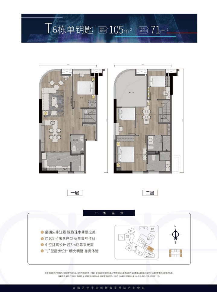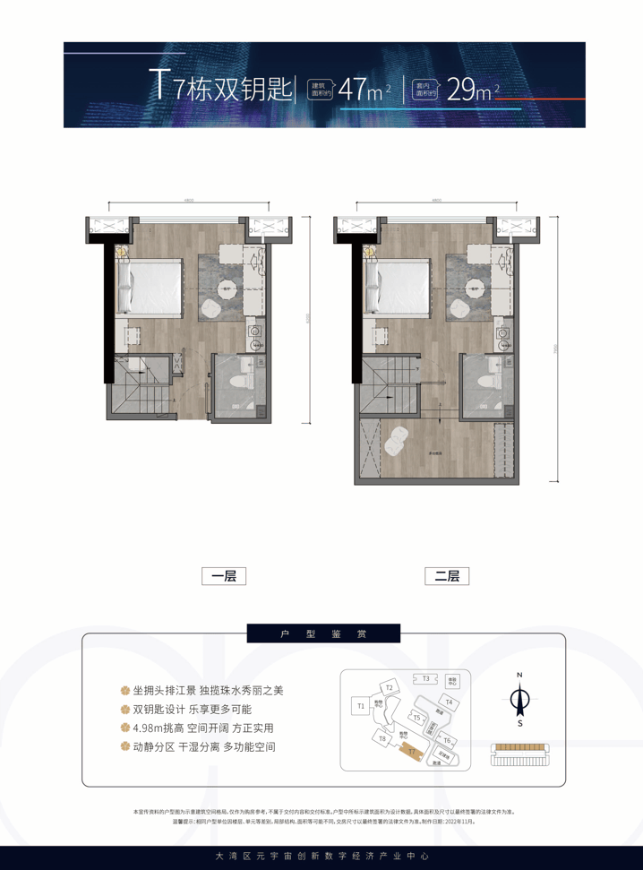 💎户型涵盖32–105㎡百变空间 4.98米奢阔挑高双钥匙设计