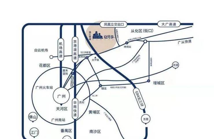 高速:广从快速路双向六车道无红绿灯,自驾40分钟达珠江新城;从埔快线(北部快线),两期建设,一期预计2022年开通,从化——长平(黄埔)——科韵路(天河),半小时通勤直达市区;大广、京港澳、北二环等高速全面连接,无缝衔接粤港澳大湾区,出行无忧。