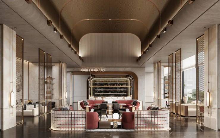 在方案设计阶段,设计团队采用现代轻奢风格,结合广州岭南在地元素,如镬耳屋、雕窗、石材拼花,同时结合骑楼建筑、建筑穹顶等元素,用现代的设计语言表达对广州中西合璧的历史记忆。