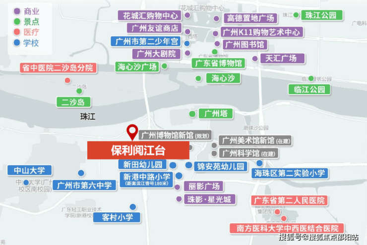 ○ 4大核心商圈:往北-珠江新城CBD、往南-客村商圈、往东-琶洲广州塔国际商圈、往西-海珠西商圈
