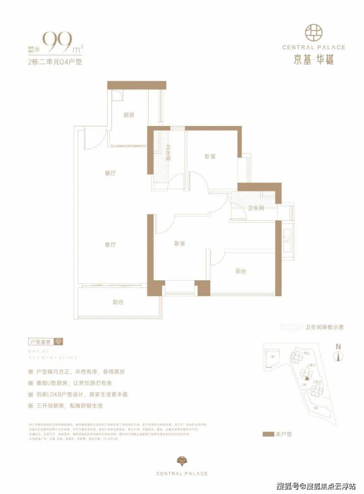项目户型包括95㎡的3房2厅2卫、99㎡的3房2厅2卫、111㎡的3房2厅2卫、120㎡的3房2厅2卫、143㎡的4房2厅2卫及153㎡的5房2厅2卫,143㎡四房为横厅设计。