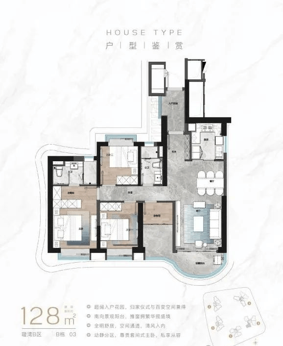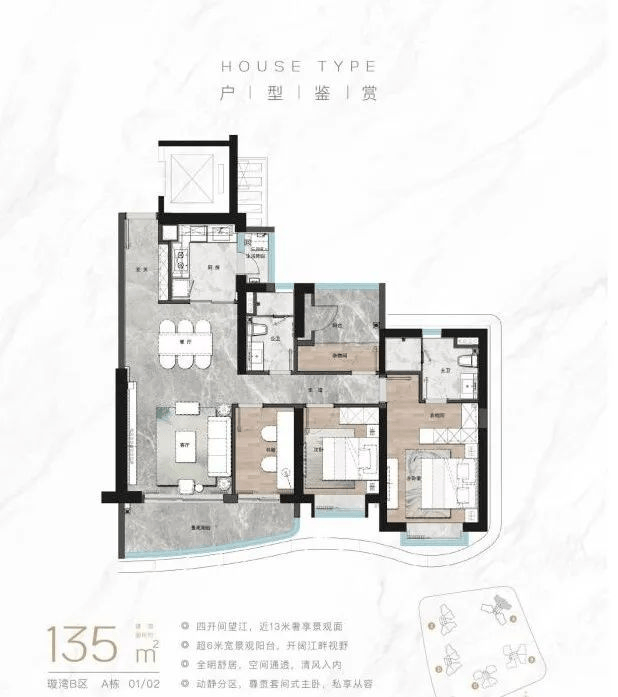 八重酒店式归家礼序,选用博物馆级环球石材,打造酒店式社区落客区;社区迎宾大堂(层高约9米);四季风雨连廊;单元豪华大堂;超配车库入口;车库地下豪华大堂;精装车马厅;臻享高定生活入户礼遇,塔尖圈层生活境界。