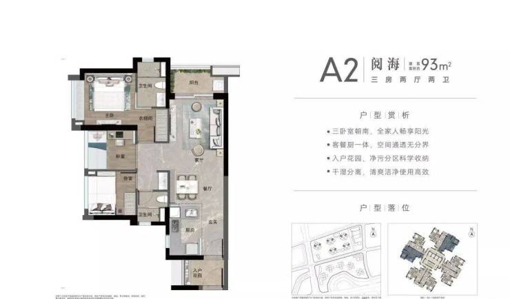 约93㎡南向3房,约93㎡北向3房。