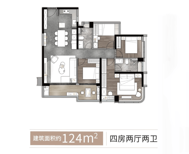 江幕·辰汐 124㎡ 四房两厅两卫